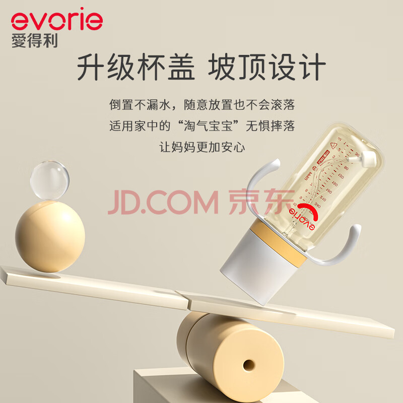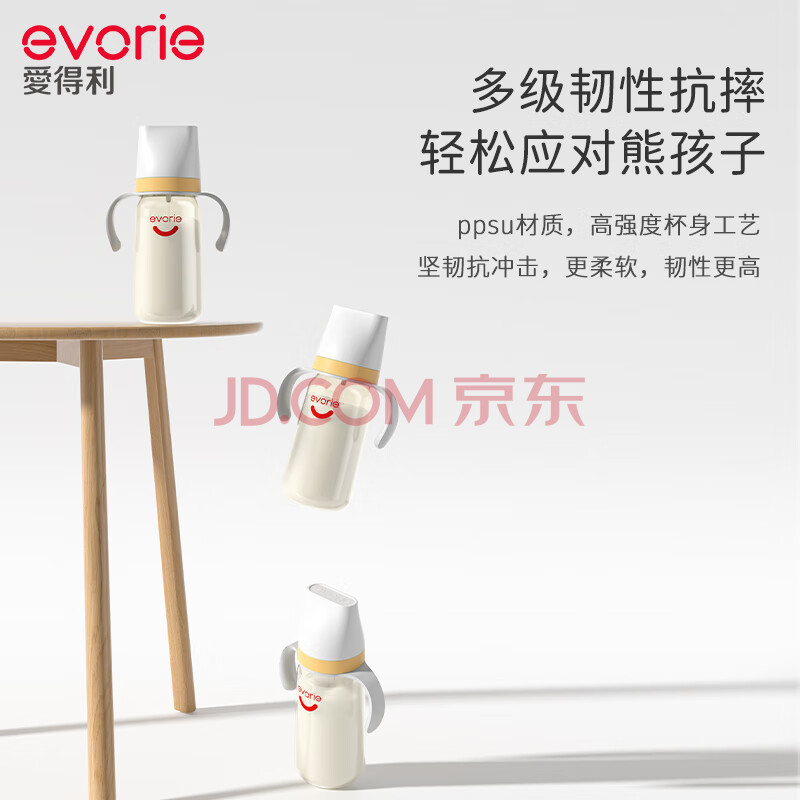 商品相册:爱得利(evorie) 婴儿奶瓶6个月以上 宽口径带手柄带重力球PPSU奶瓶 300ml橙第