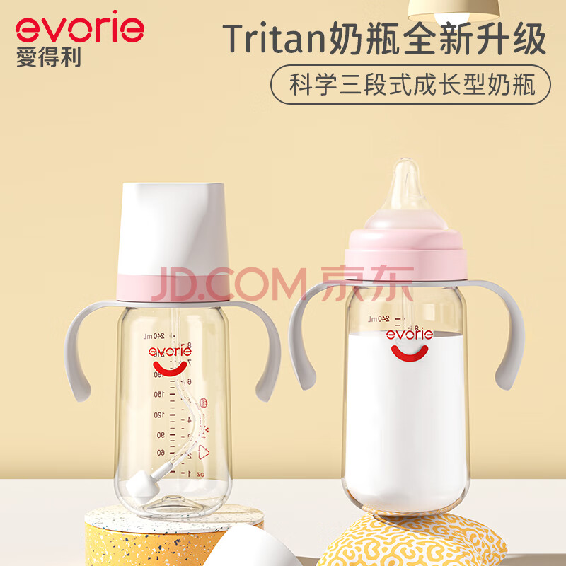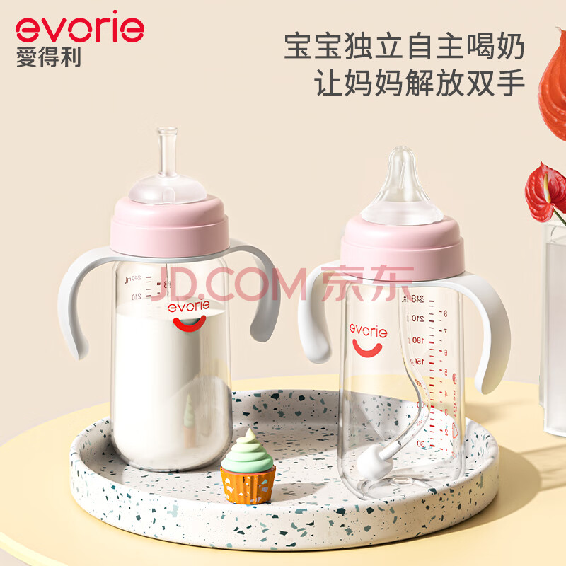 商品相册:爱得利(evorie)奶瓶 宽口径婴儿奶瓶双手柄带重力球Tritan奶瓶240ml 粉(6个月+)第1张/共6