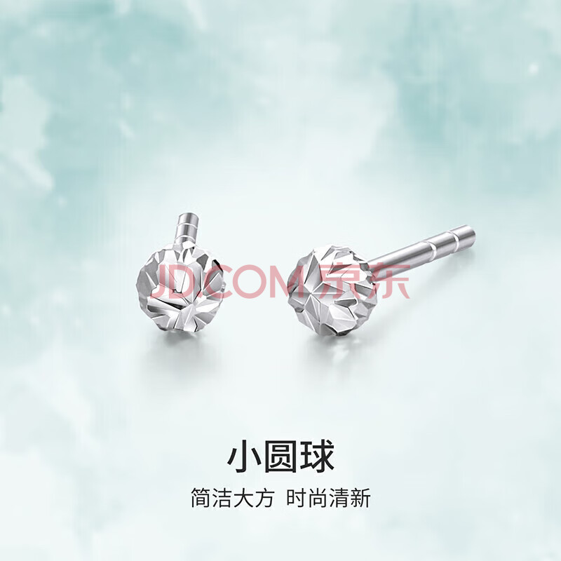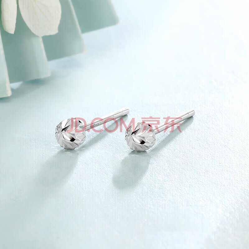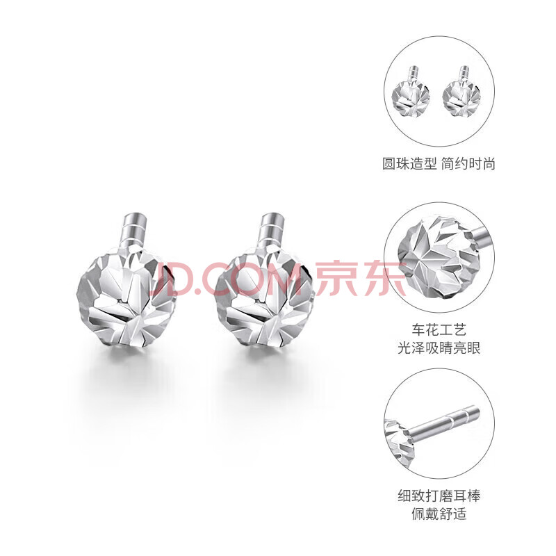 商品相册:梦金园铂金耳钉PT950车花小圆球养耳棒耳针耳饰女款一对母亲节礼物第
