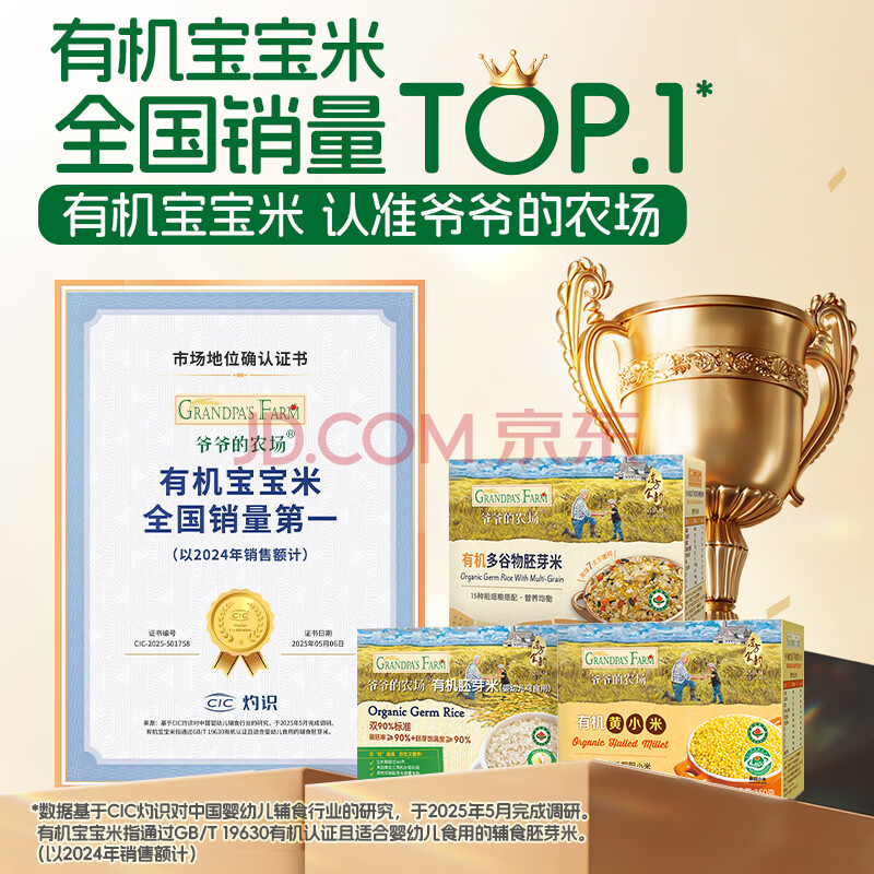 商品相册:爷爷的农场有机胚芽米350g*3儿童宝宝谷物米辅食大米粥1岁到3岁婴幼儿可食用第