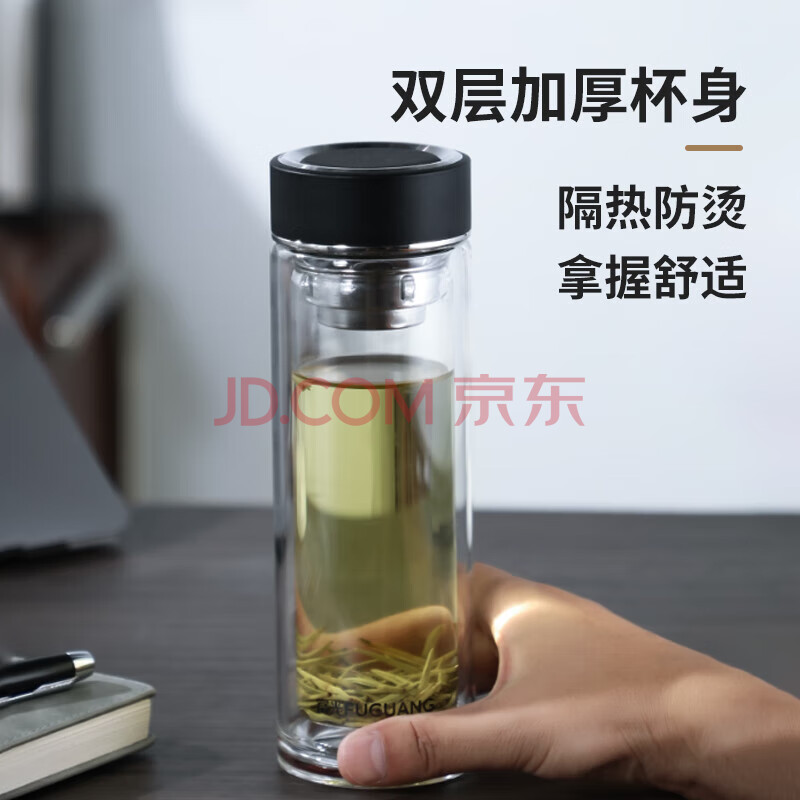 商品相册:富光双层玻璃杯 高硼硅茶水分离泡茶杯 车载商务水杯子男士礼盒320ml第