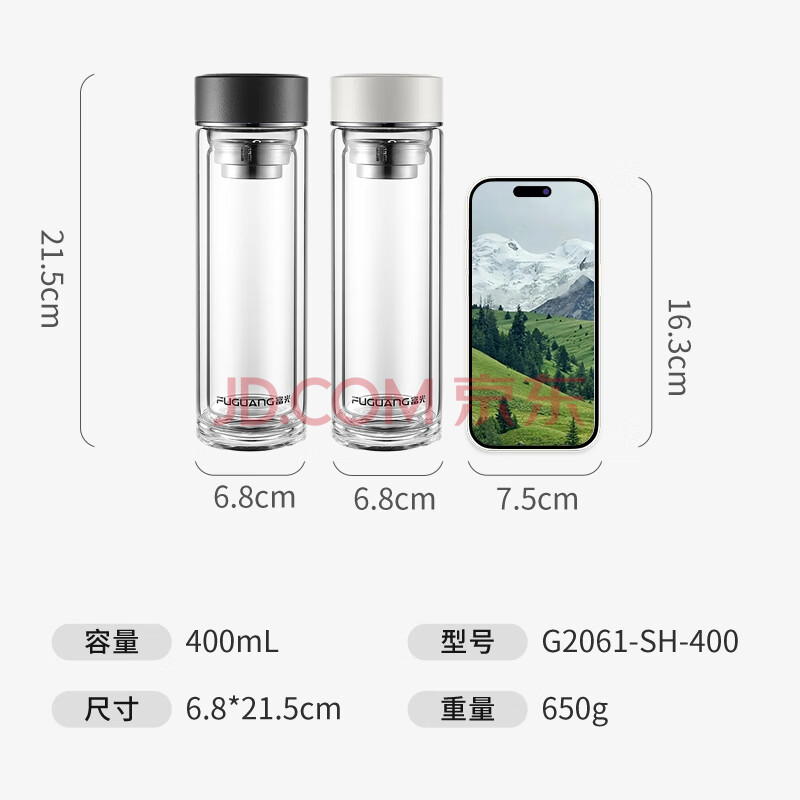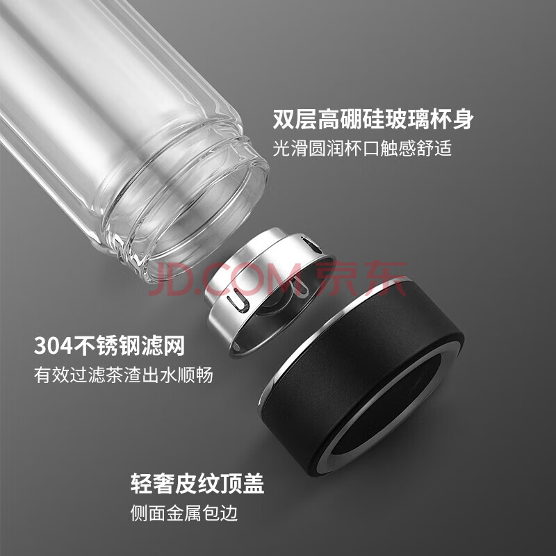 商品相册:富光双层玻璃杯 高硼硅茶水分离泡茶杯 车载便携商务水杯子男女400ml第