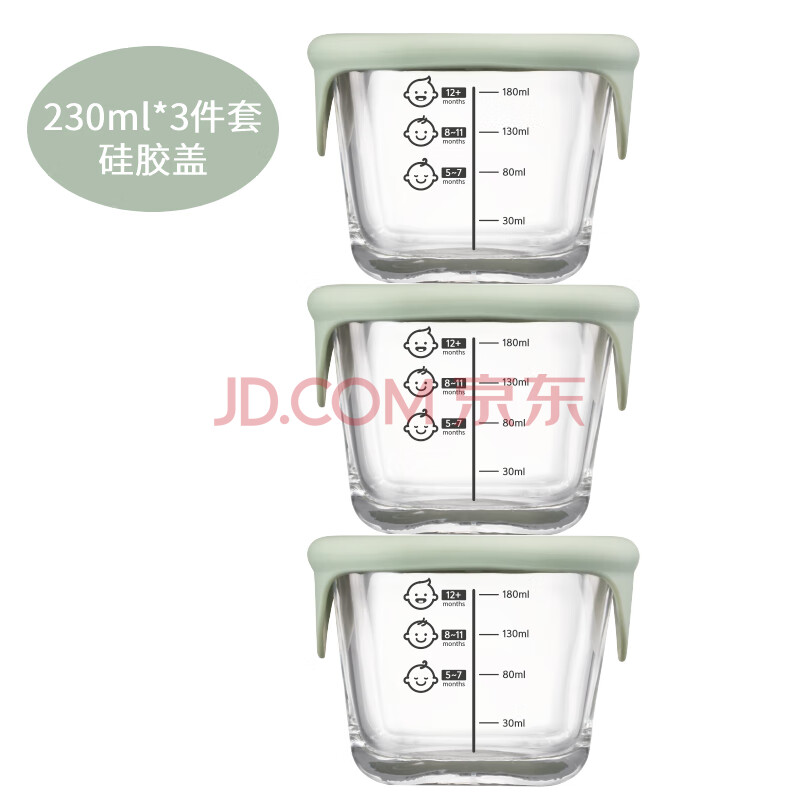 商品相册:乐扣乐扣(LOCK&LOCK)婴儿辅食盒宝宝耐热玻璃辅食碗可冷冻储存保鲜盒 豆绿方形230ML*3第