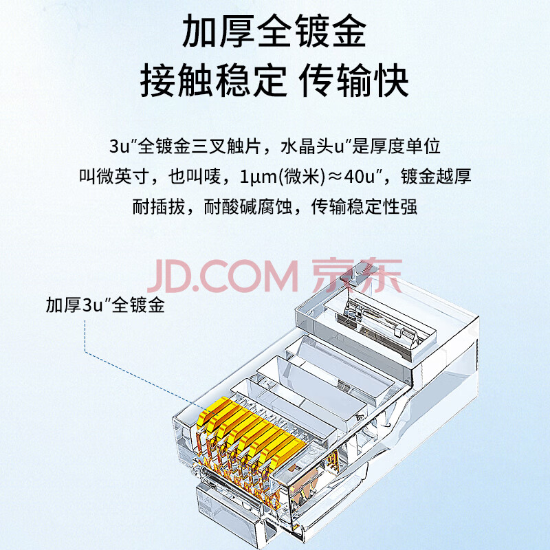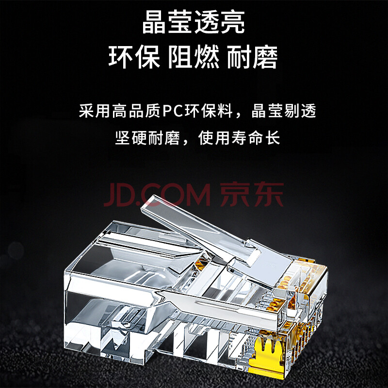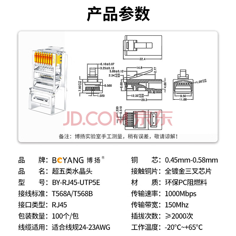 商品相册:博扬(BOYANG) 超五类水晶头 Cat5e类非屏蔽8P8C千兆网线网络RJ45水晶头 工程级全镀金 100个/盒 BY-RJ45-UTP5E第