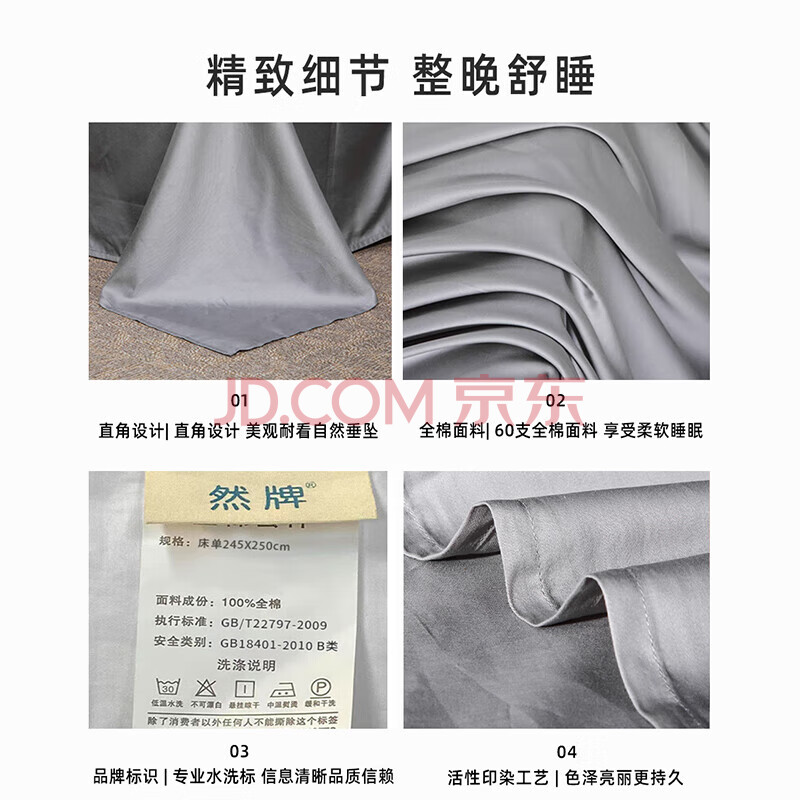 商品相册:然牌 全棉床单单件 100%纯棉加厚床单 学生宿舍床单单人 180x230cm 第