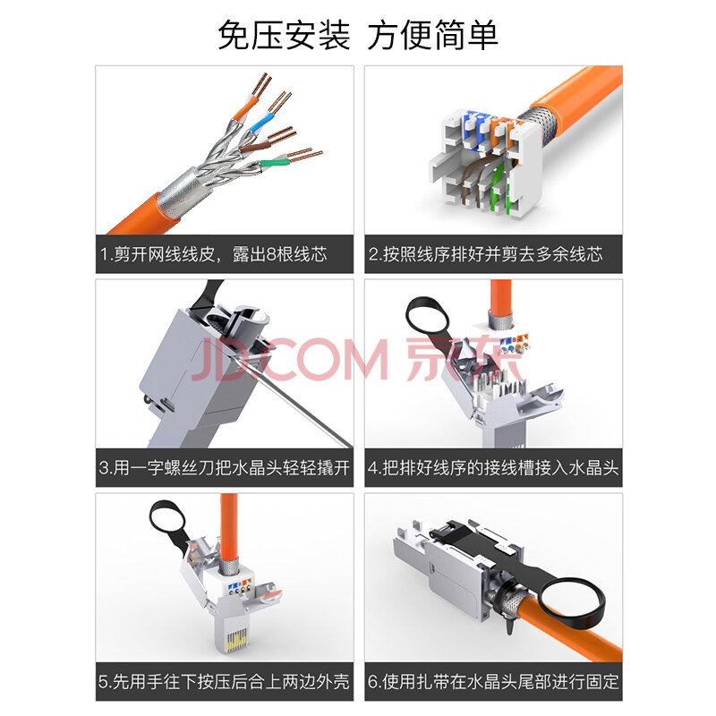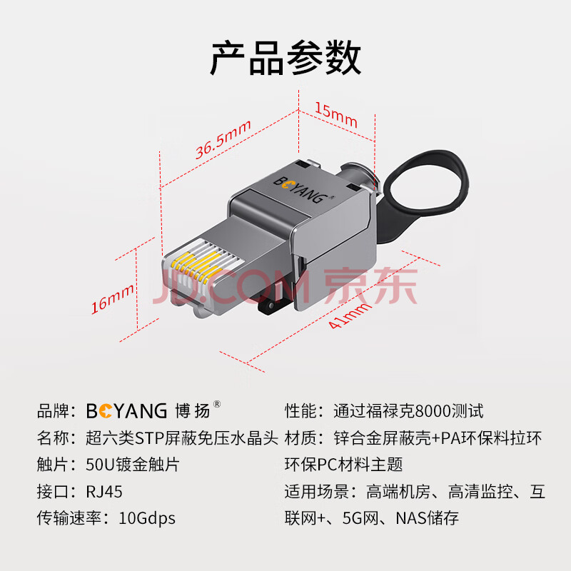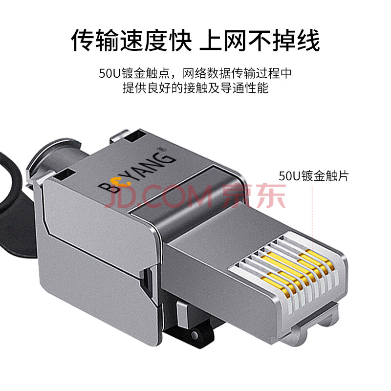 商品相册:博扬(BOYANG)工程级超六类STP屏蔽免压水晶头 CAT.6A万兆免打网络线接头 10Gbps传输 RJ45服务器模块水晶头第
