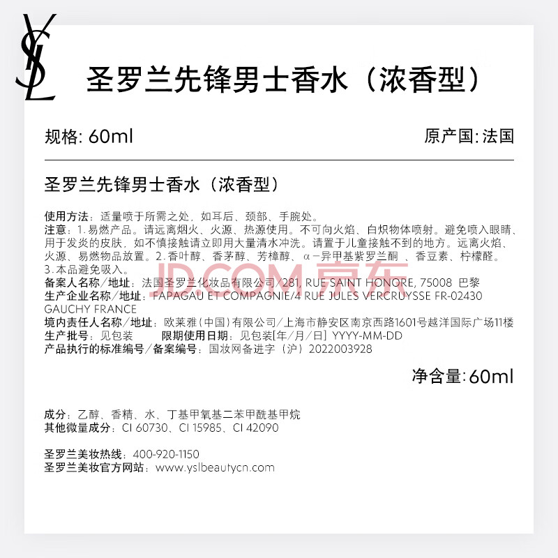 商品相册:YSL圣罗兰先锋男士香水浓香60ml海洋香生日礼物送男友第