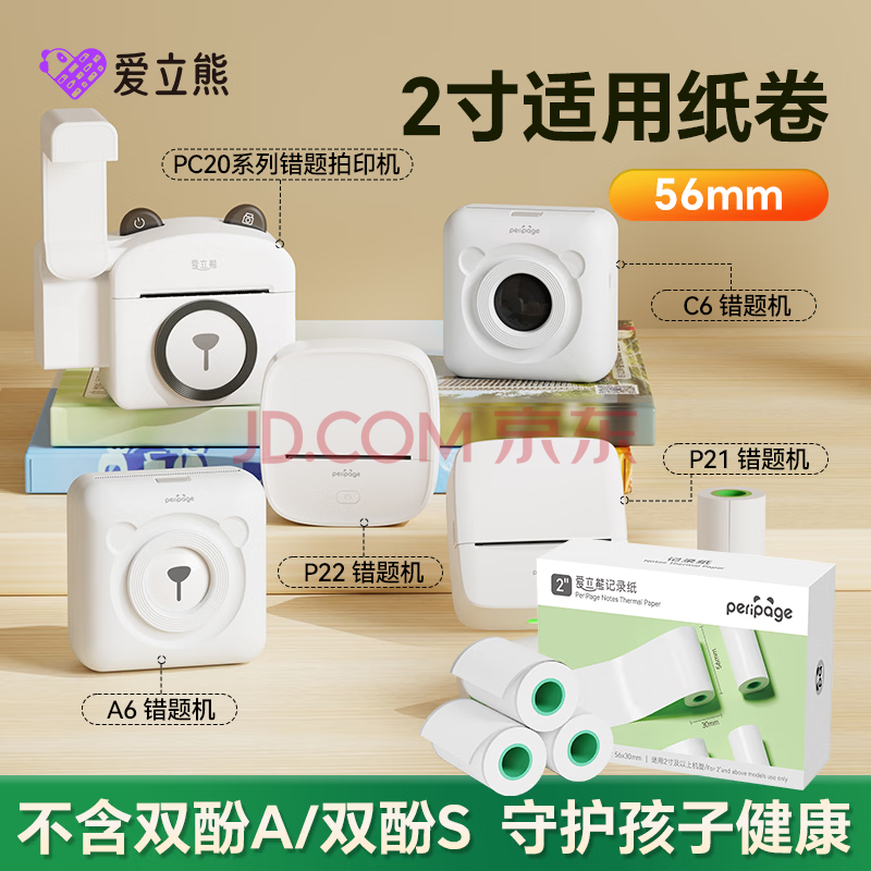 商品相册:爱立熊2寸记录纸十年留影热敏打印纸 三防不含双酚A热敏纸 3卷装【适配A6/C6/P21】第