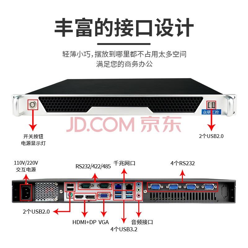 商品相册:众研1U上架式【酷睿十代】VPC-1101 合金超薄 工业采集 微型服务器 i9-10900/32G内存/500固/2T硬盘第