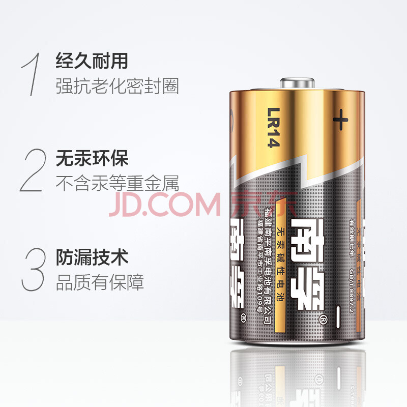 商品相册:南孚 2号电池 碱性电池 LR14/1.5V 2粒/卡 1卡装第