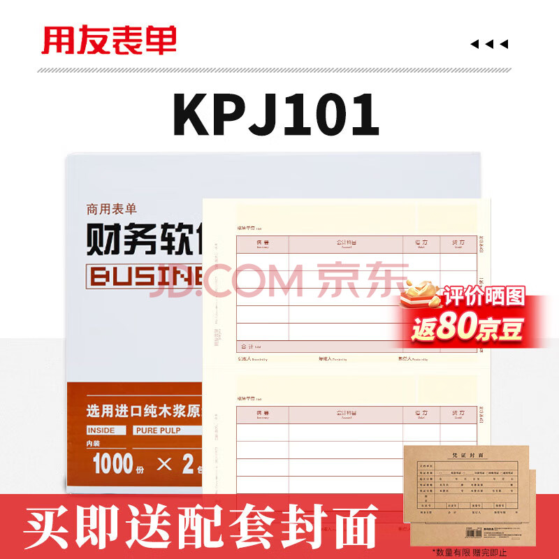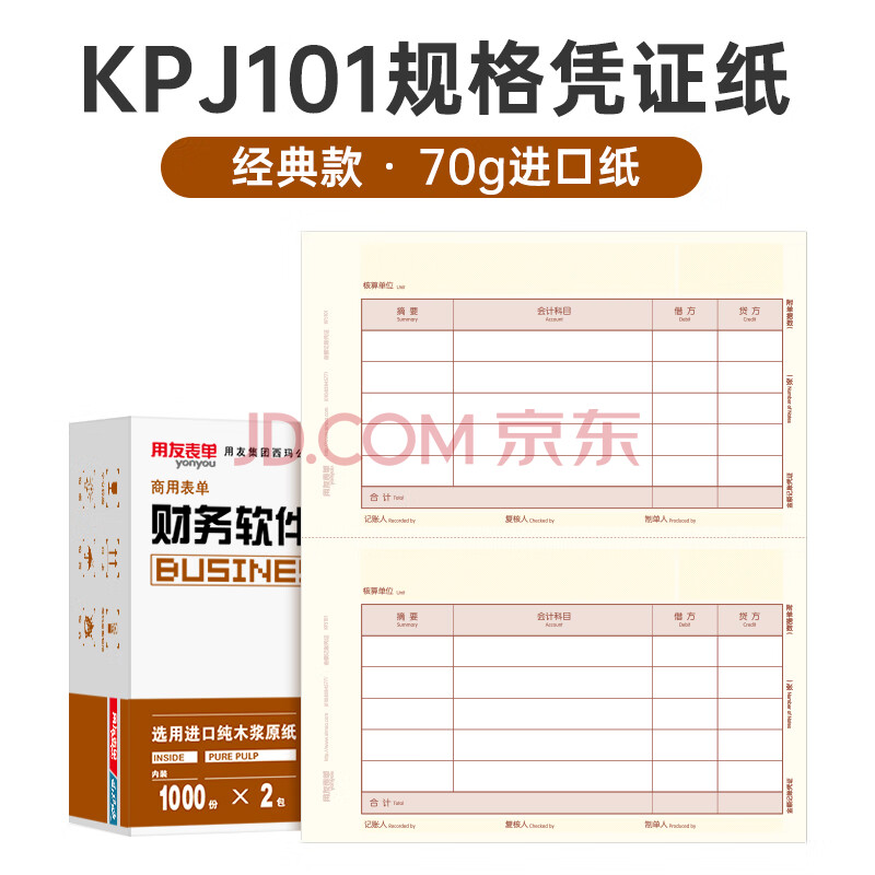 商品相册:用友凭证纸KPJ101A4激光金额记账凭证纸【70g-经典款】210*127mm 用友软件T3/T6/U8/好会计SKPJ101 2000份/箱第1张/共8