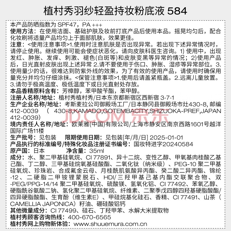 商品相册:植村秀[第2代]小方瓶粉底液584 35ml遮瑕防晒提亮化妆品 生日礼物送女友第
