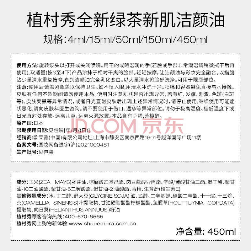 商品相册:植村秀绿茶卸妆油150ml 干皮熬夜提亮温和清洁 细致毛孔 生日礼物送女友第