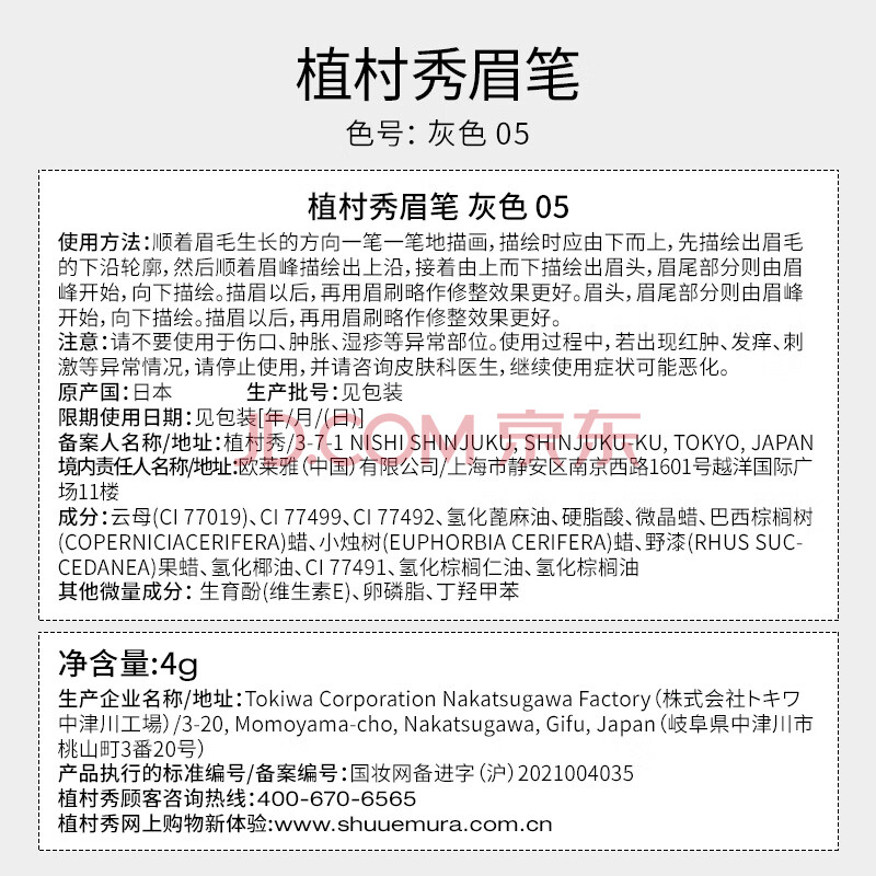 商品相册:植村秀经典砍刀眉笔灰色05 防水防汗自然 化妆师 生日礼物送女友 男友第1张/共8