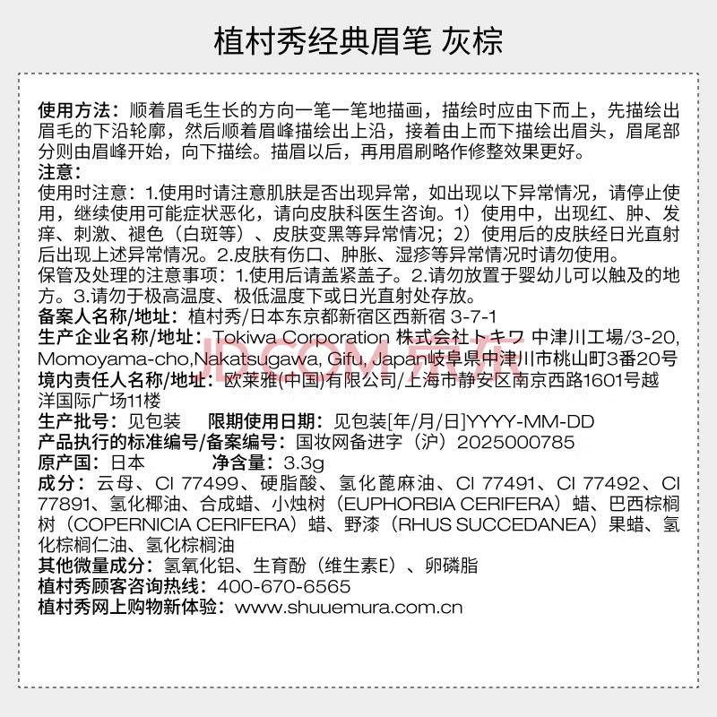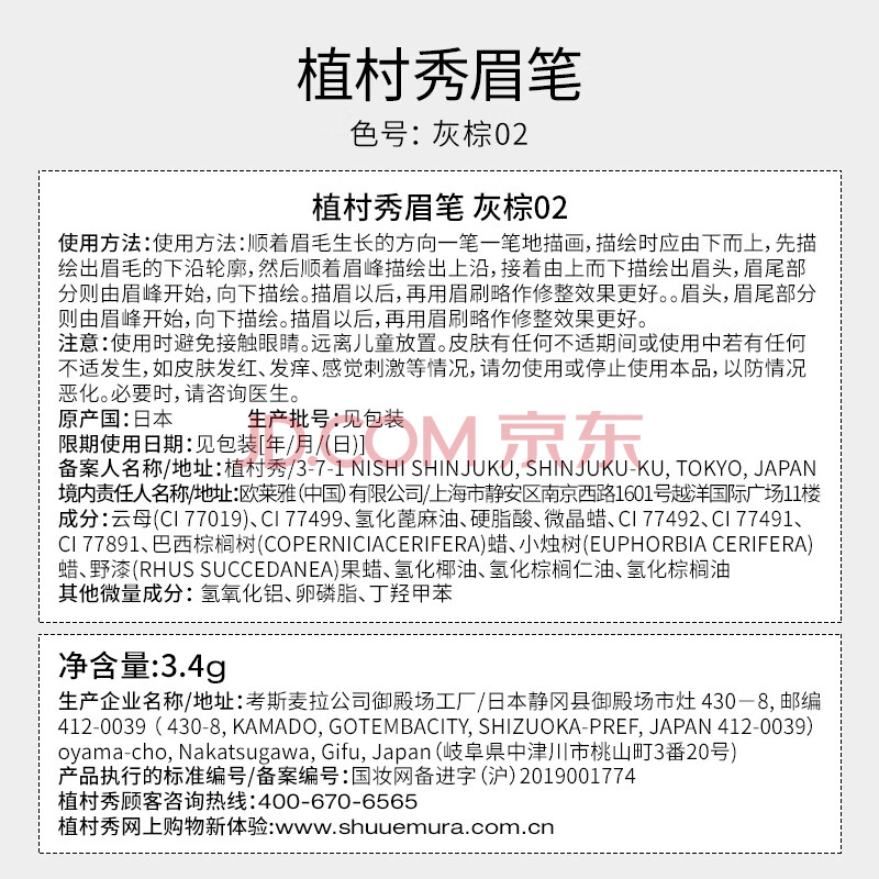 商品相册:植村秀经典砍刀眉笔灰棕02 防水防汗自然 化妆师 生日礼物送女友 男友第