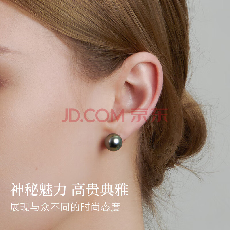 商品相册:GiO珠宝 大溪地海水黑珍珠耳钉女18K金送女友送老婆生日礼物第