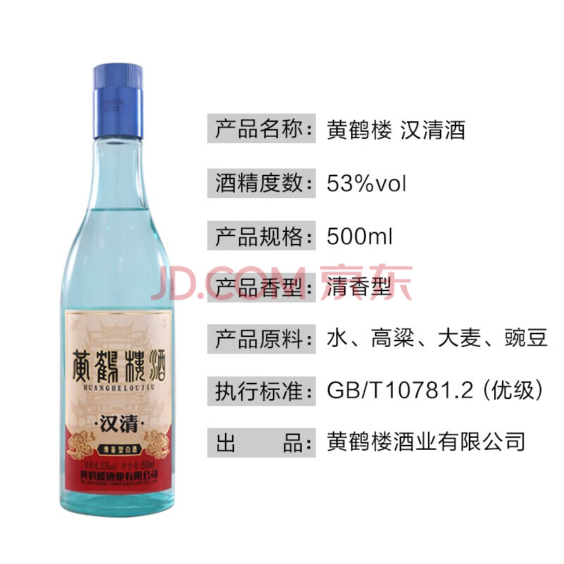 商品相册:黄鹤楼酒 汉清酒 清香型白酒 53度 500ml 单瓶装 自饮 送礼第