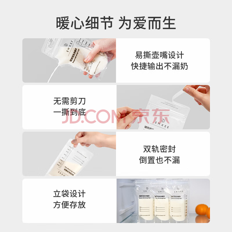 商品相册:嫚熙(EMXEE)储奶袋一次性母乳装奶壶嘴型储存袋冷藏装奶保鲜防漏 200ml*60枚第