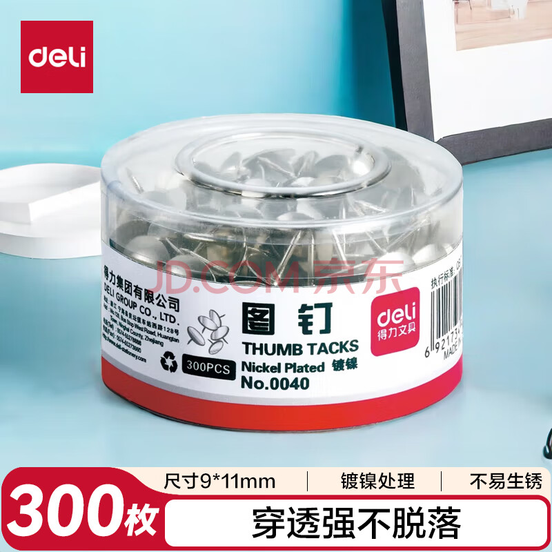 商品相册:得力(deli)【超级爆款】镀镍图钉 软木板按钉 办公用品工字钉 照片钉 300枚/筒 0040第