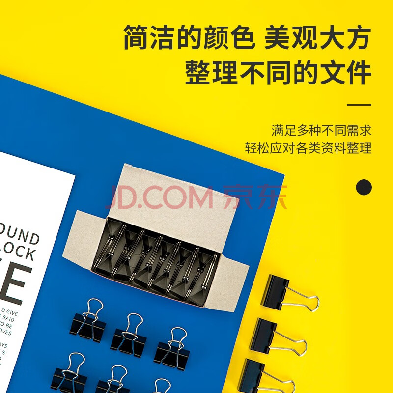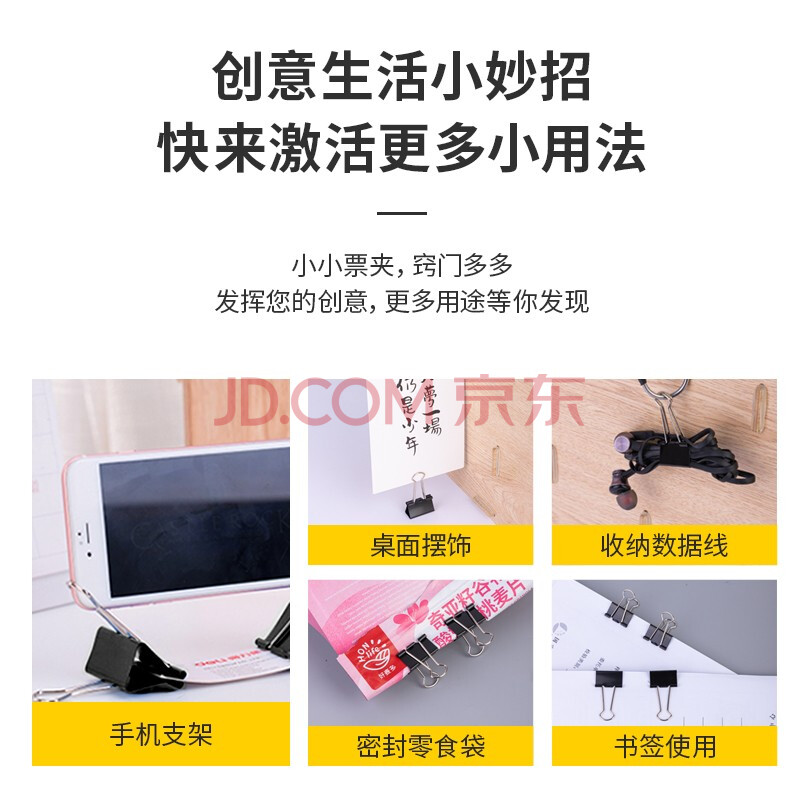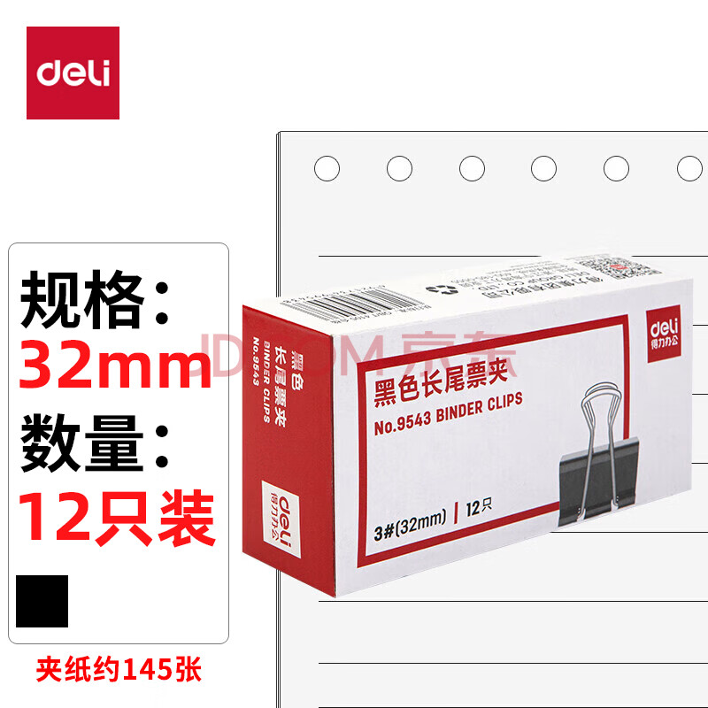 商品相册:得力(deli)32mm中号金属黑色长尾夹/票据夹/燕尾夹/铁夹子/文件夹子 12只/盒第