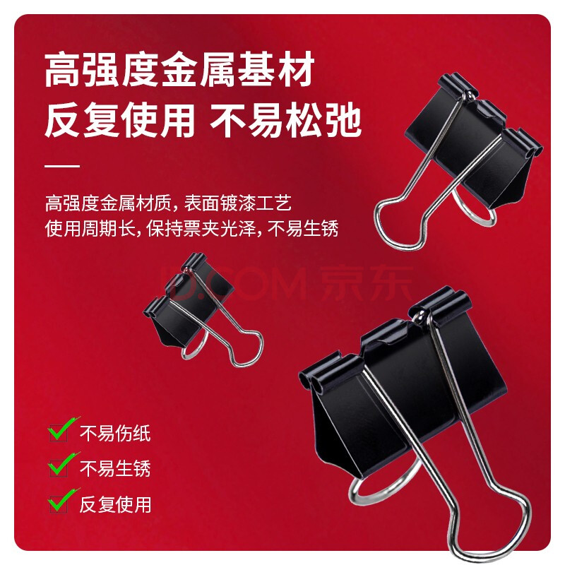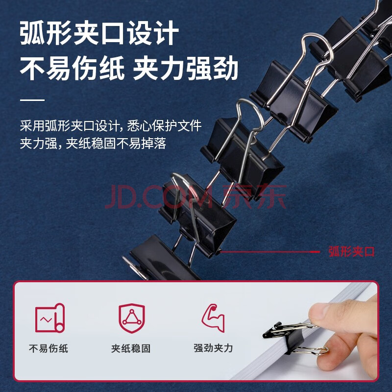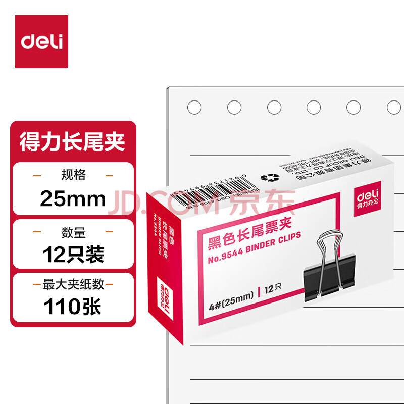 商品相册:得力(deli)25mm中号金属黑色长尾夹/票据夹/燕尾夹/铁夹子/文件夹子 12只/盒第
