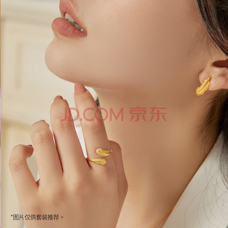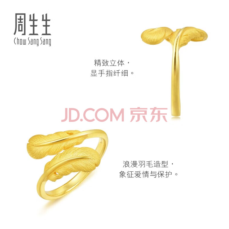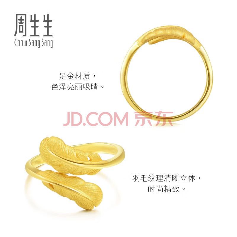 商品相册:周生生 黄金戒指爱情密语羽毛足金戒丘比特之羽89738R计价 11圈3.45克第