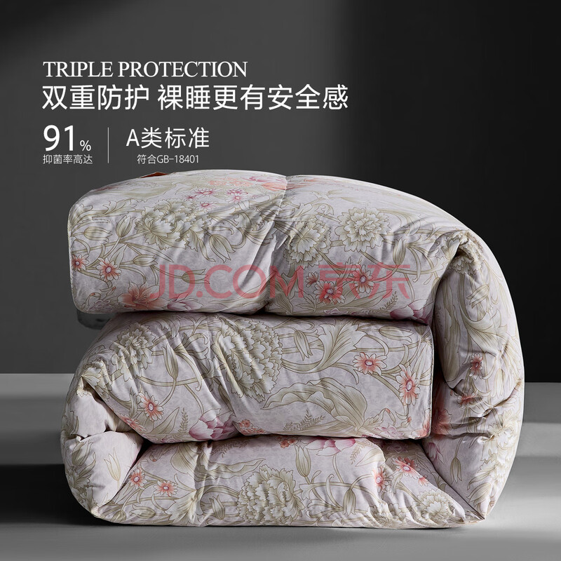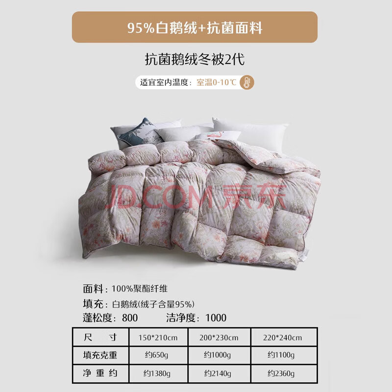 商品相册:水星家纺羽绒被95%白鹅绒被子冬季加厚冬被芯双人羽绒被200cm×230cm-1000g第
