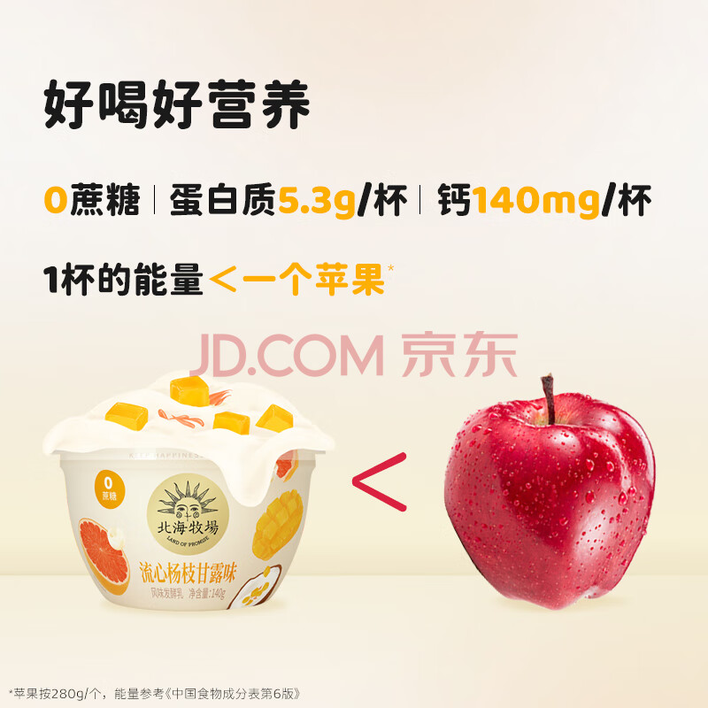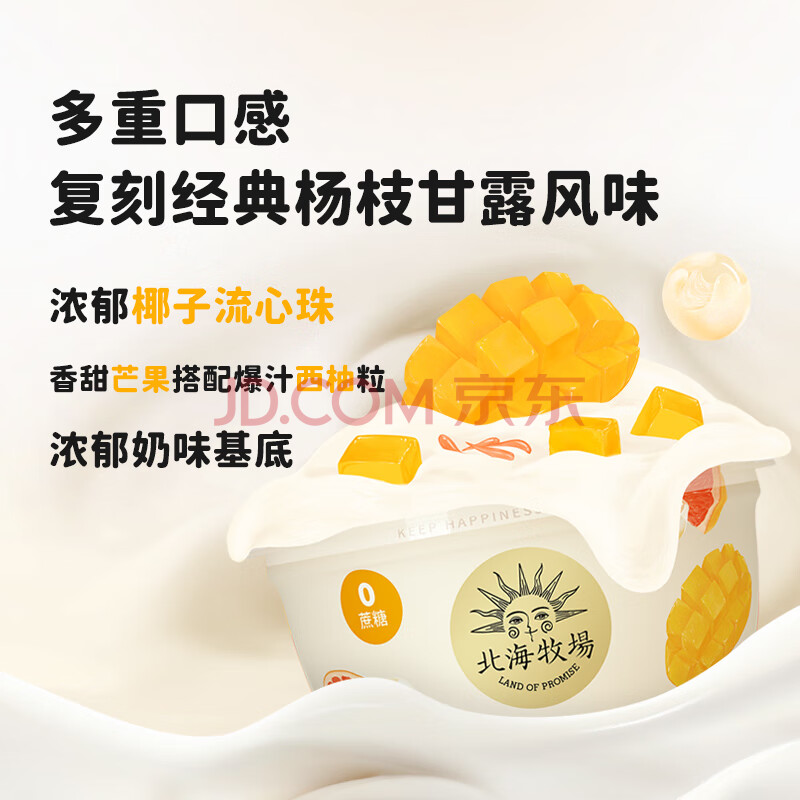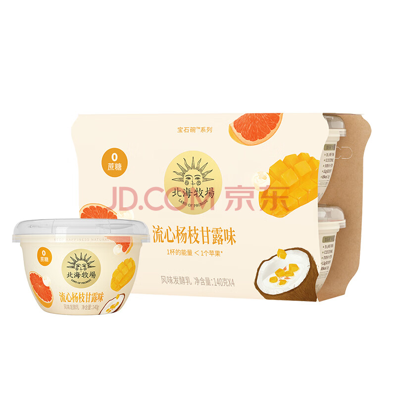 商品相册:北海牧场宝石碗杨枝甘露味140g*4杯0蔗糖3.8g/100g蛋白 低温酸奶 健康轻食第