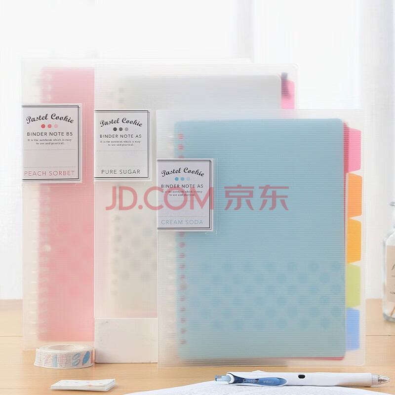 商品相册:国誉(KOKUYO)淡彩曲奇B5活页本Campus笔记本子活页纸替换芯精美5色索引分隔页 40张 透明 WSG-RUCP11NT第