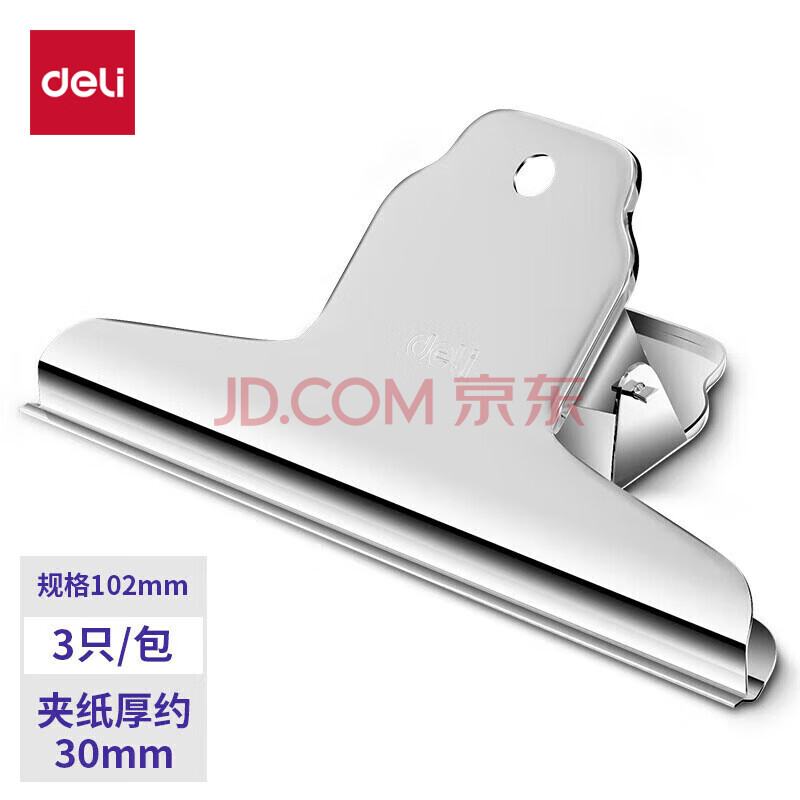 商品相册:得力(deli)3只102mm山形票据铁票夹 财务票据夹金属票据文件夹子 办公用品 3只/包 中号9532第