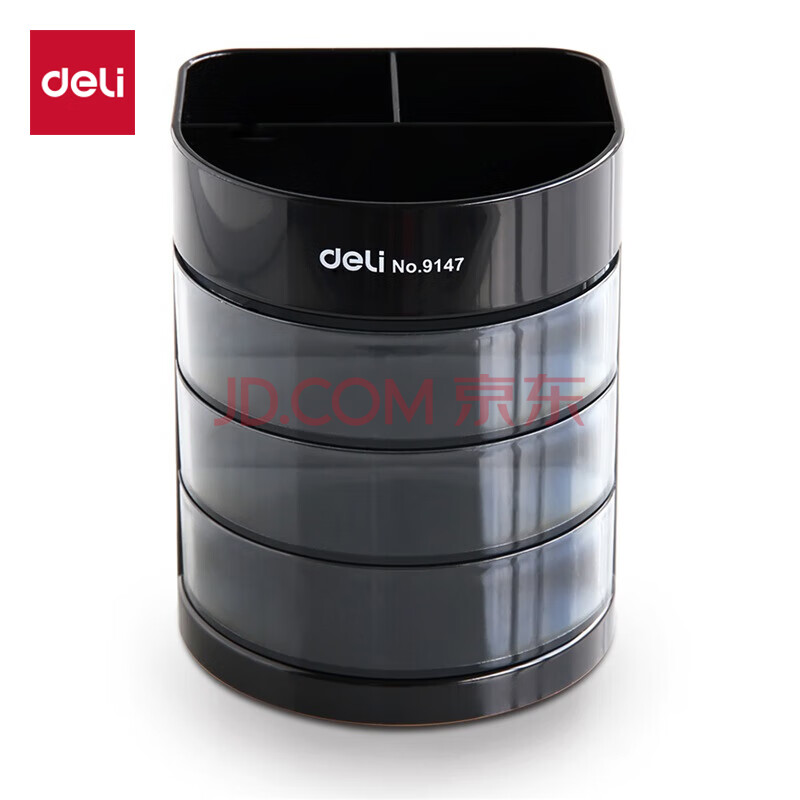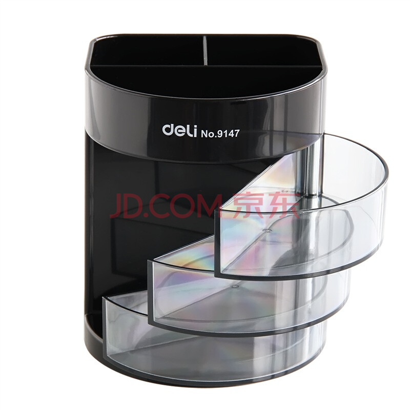 商品相册:得力(deli)三层多功能办公笔筒 创意桌面收纳盒 办公学习用品 黑色9147第