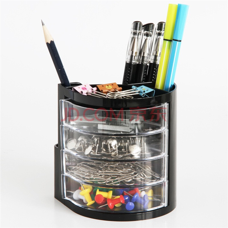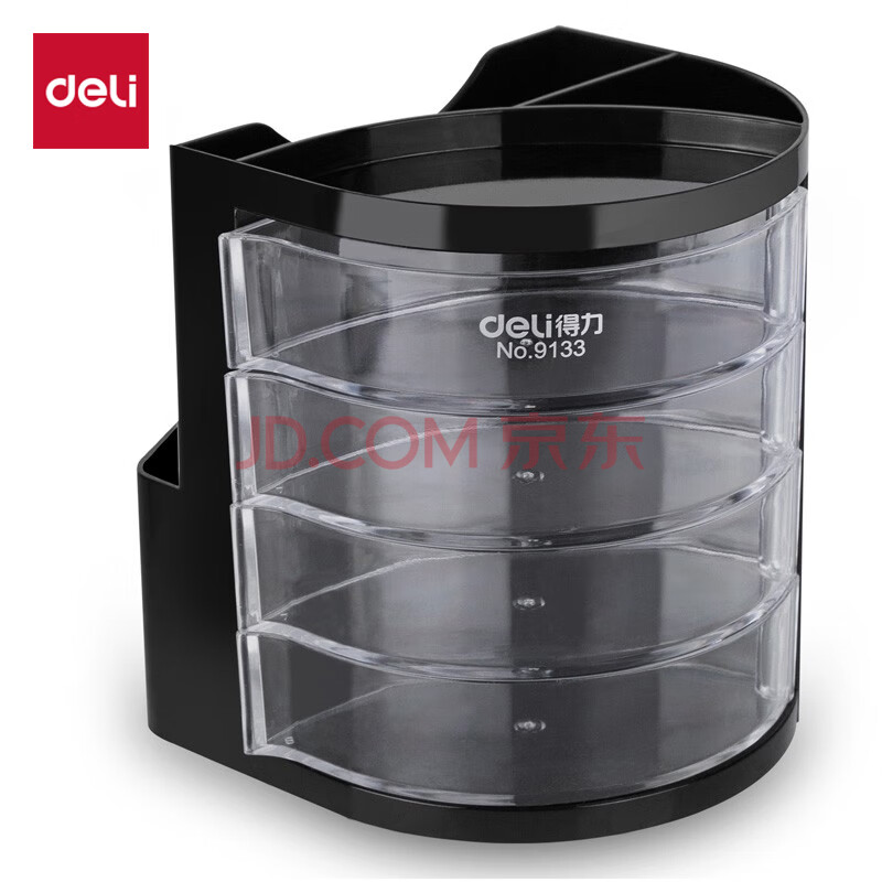 商品相册:得力(deli)四层创意笔筒开学必备 赠便条纸桌面收纳办公盒 黑色第