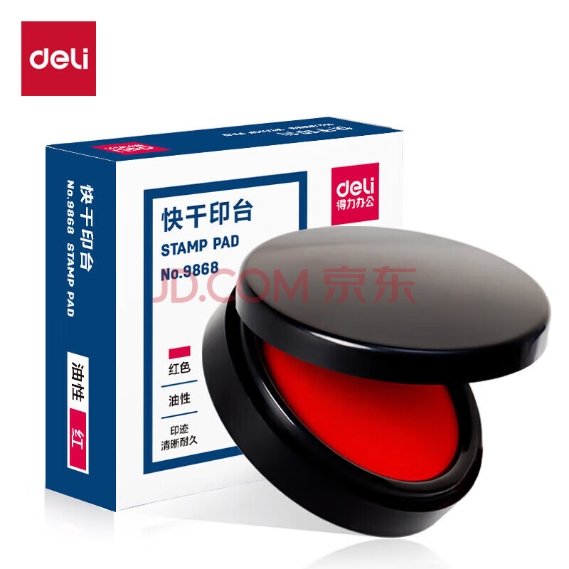 商品相册:得力(deli)【超级爆款】φ70mm圆形塑壳快干印台印泥 财务办公用品 红色9868(新老混发)第
