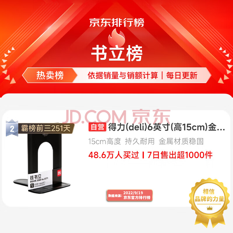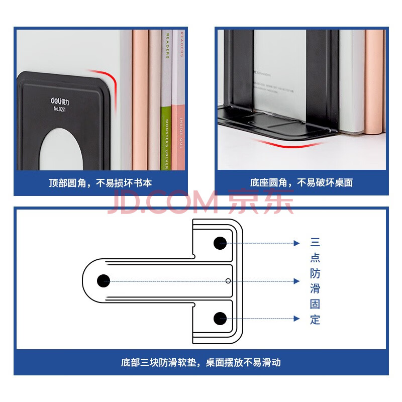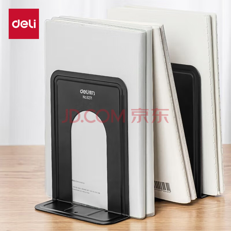 商品相册:得力(deli)6英寸(高15cm)金属铁桌面书立置物架书收纳桌上书架 办公书靠2片 办公学习用品 黑色第