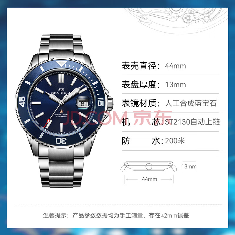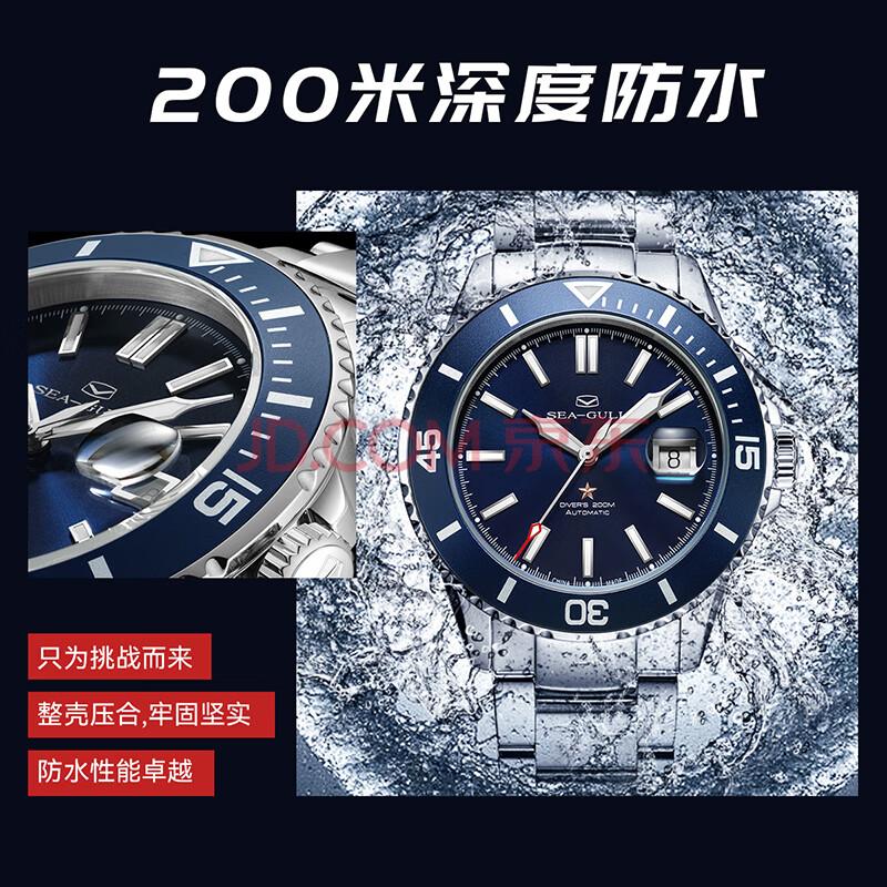 商品相册:海鸥(SEAGULL)手表男士自动机械表 海洋系列男士手表 生日礼物潜水表 1523蓝盘第