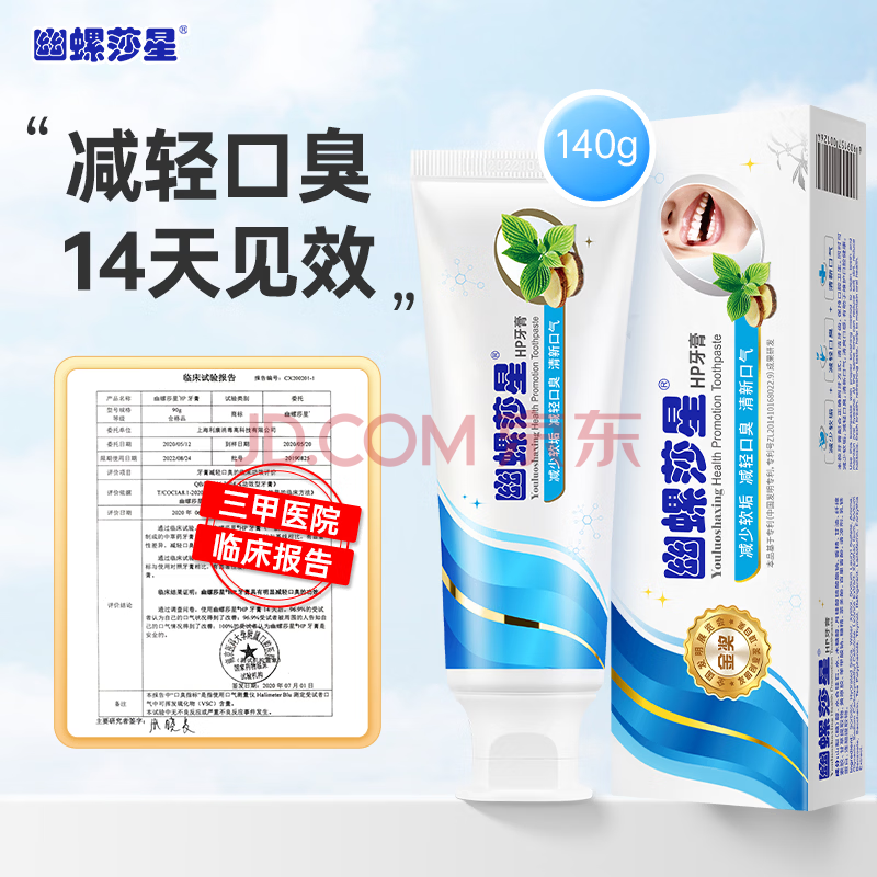 商品相册:幽螺莎星牙齿膏薄荷减轻口臭去烟臭异味口气护理螺旋沙星牙膏140g第