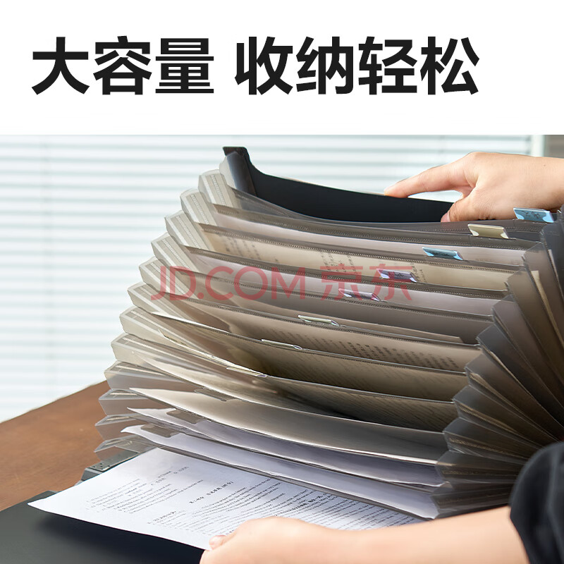 商品相册:得力(deli)A4/13格飞盘扣式双色手提文件包/风琴包/试卷文件夹/资料夹文件收纳保护 办公学习用品蓝5558第