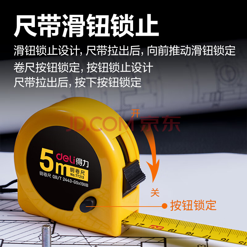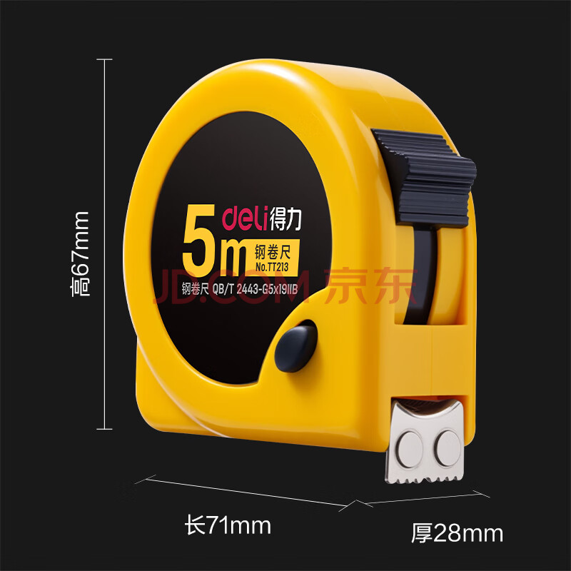 商品相册:得力【磁吸尺带头-升级不加价】5m锁定功能钢卷尺 木工尺装修测量尺子 办公用品TT213(原8203新老混发)第