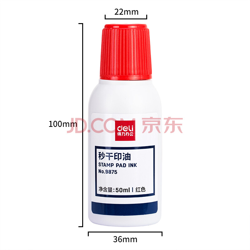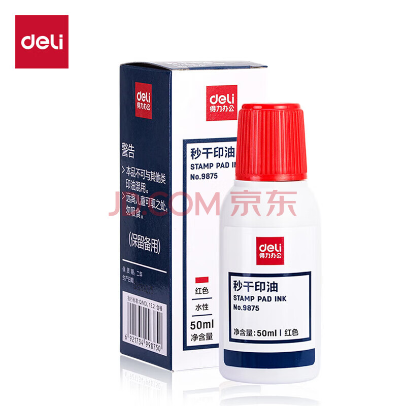 商品相册:得力(deli)50ml秒干印油 财务办公印章专用印油 红色 9875第