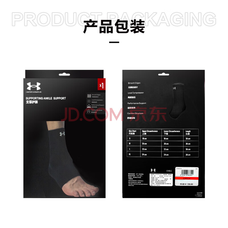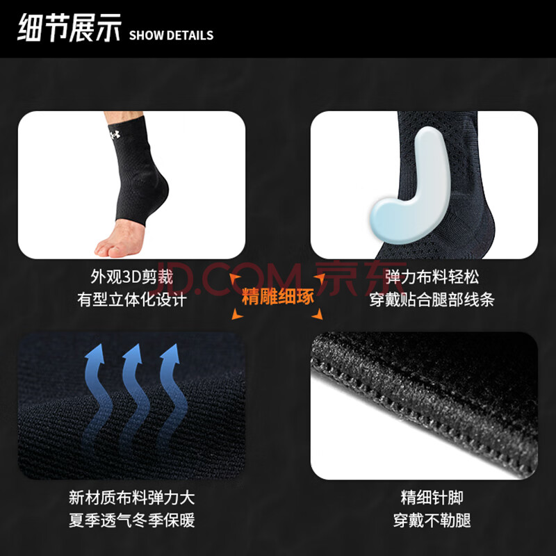 商品相册:安德玛(Under Armour)运动护踝 夏季踝关节固定绑带脚踝护具护脚踝套男女防崴脚 黑色M第