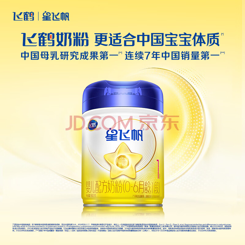 商品相册:飞鹤星飞帆 婴儿配方奶粉1段(0-6月) 900克 【5HMOs】专利OPO育儿补贴第