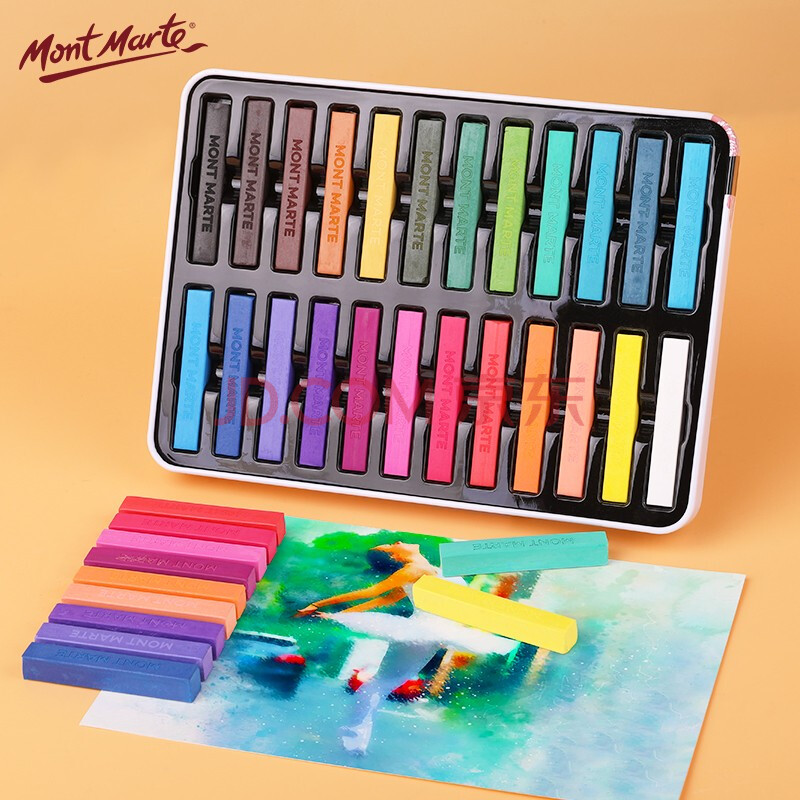 商品相册:蒙玛特(Mont Marte)色粉笔24色 彩色粉笔画画粉画棒美术绘画粉彩棒儿童彩笔套装学生色粉画铁盒装MMPT0017美术写生第