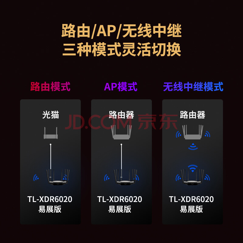 商品相册:普联(TP-LINK) AX6000双频全千兆无线路由器 6000M速率 WiFi6高速网络 穿墙 家用智能 游戏路由 XDR6020易展版第