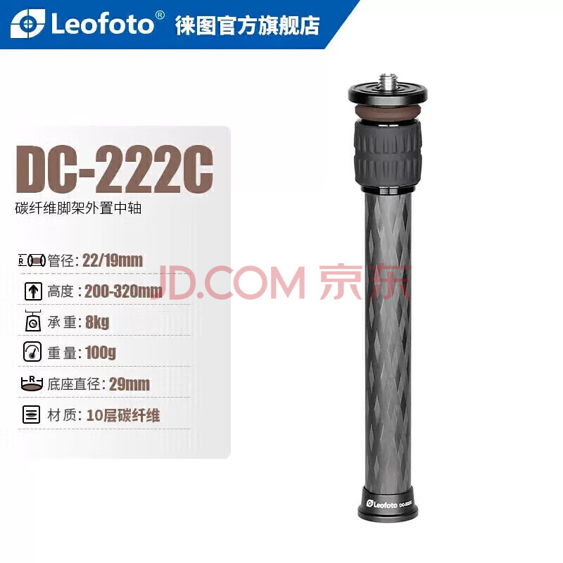 商品相册:徕图(Leofoto)中轴 碳纤维中轴2节三脚架加高中轴管 DC-222C第