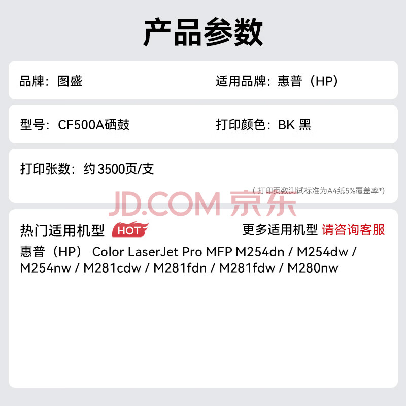 商品相册:图盛适用惠普M281fdw硒鼓HP202A硒鼓HPM254dw M254dn M254nw M281fdn M281cdw M280nw打印机硒鼓墨粉盒碳粉CF500X第