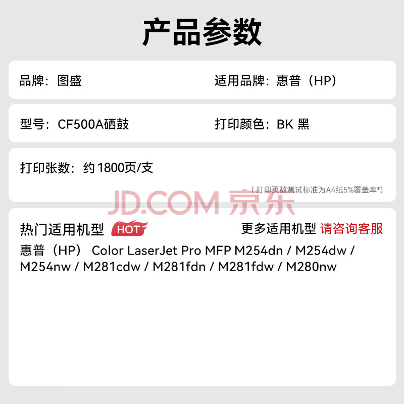商品相册:图盛适用惠普M281fdw硒鼓HP202A硒鼓HPM254dw M254dn M254nw M281fdn M281cdw M280nw打印机硒鼓墨粉盒碳粉CF500A第