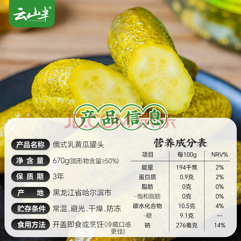 商品相册:云山半喀秋莎联名款俄式酸黄瓜670g 酸青瓜乳黄瓜方便速食汉堡西餐配菜第