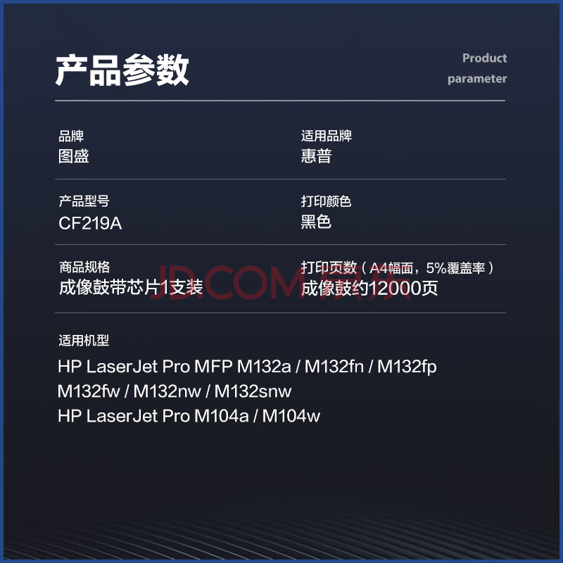 商品相册:图盛CF219A成像鼓 适用惠普m132a硒鼓M132nw m132snw/fn/fw/fp m104w m104a打印机HP18a墨盒cf230a LaserJet第