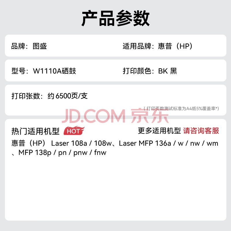 商品相册:图盛适用惠普136w硒鼓110a硒鼓HP136nw硒鼓136wm 136nw 136a 108a 108w 138p 138pnw打印机硒鼓墨粉盒W1110A硒鼓 第