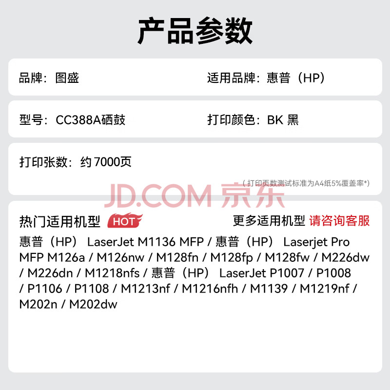 商品相册:图盛388a硒鼓适用惠普M1136硒鼓HP M126a M126nw P1108 P1007 P1106 M128fn M1136mfp打印机墨盒88a硒鼓CC388A第